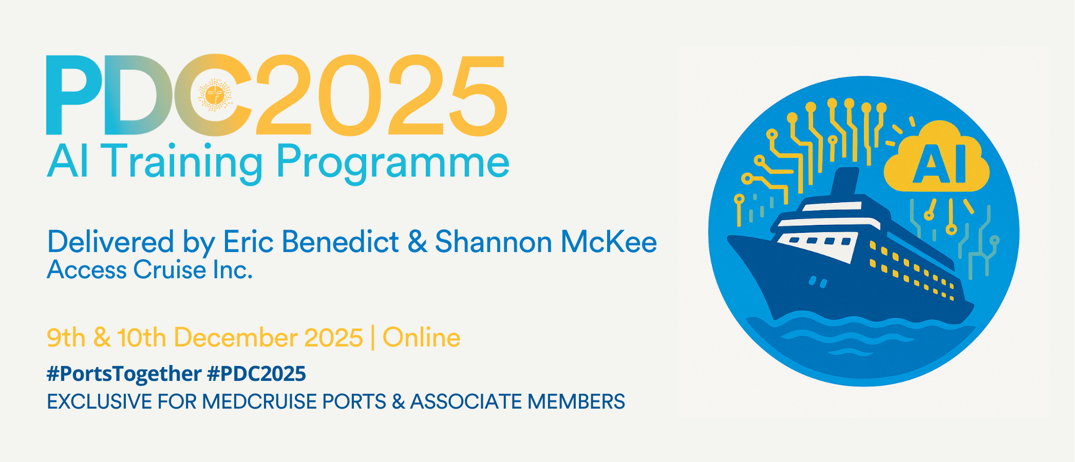 We are pleased to let you know that this year’s MedCruise Professional Development Course (PDC) will be an AI Training Programme, delivered by Eric Benedict & Shannon McKee (Access Cruise Inc.). We extend our gratitude to all participants for their interest and engagement. For further details, please read below: